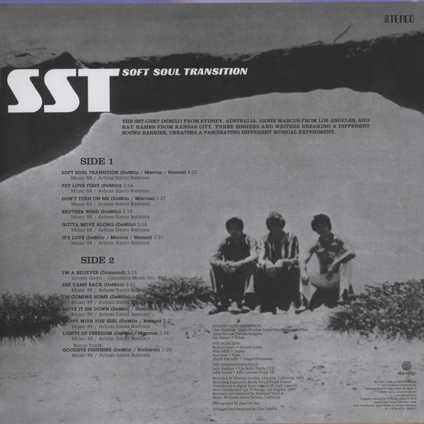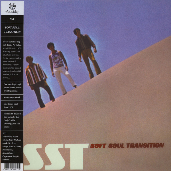 Out-Sider present the first vinyl reissue of Soft Soul Transition’s SST, originally released in 1969 as a private pressing. Breezy sunshine-pop, soft-rock, psych-pop from California. Crystal clear recording with awesome vocal harmonies, superb musicianship, bossa and blue-eyed-soul-jazz touches with folk-rock moves.