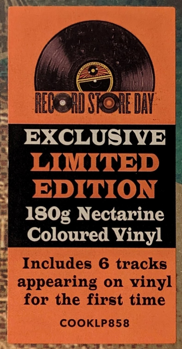 Sticker on the protective plastic, “180g Nectarine Coloured Vinyl”